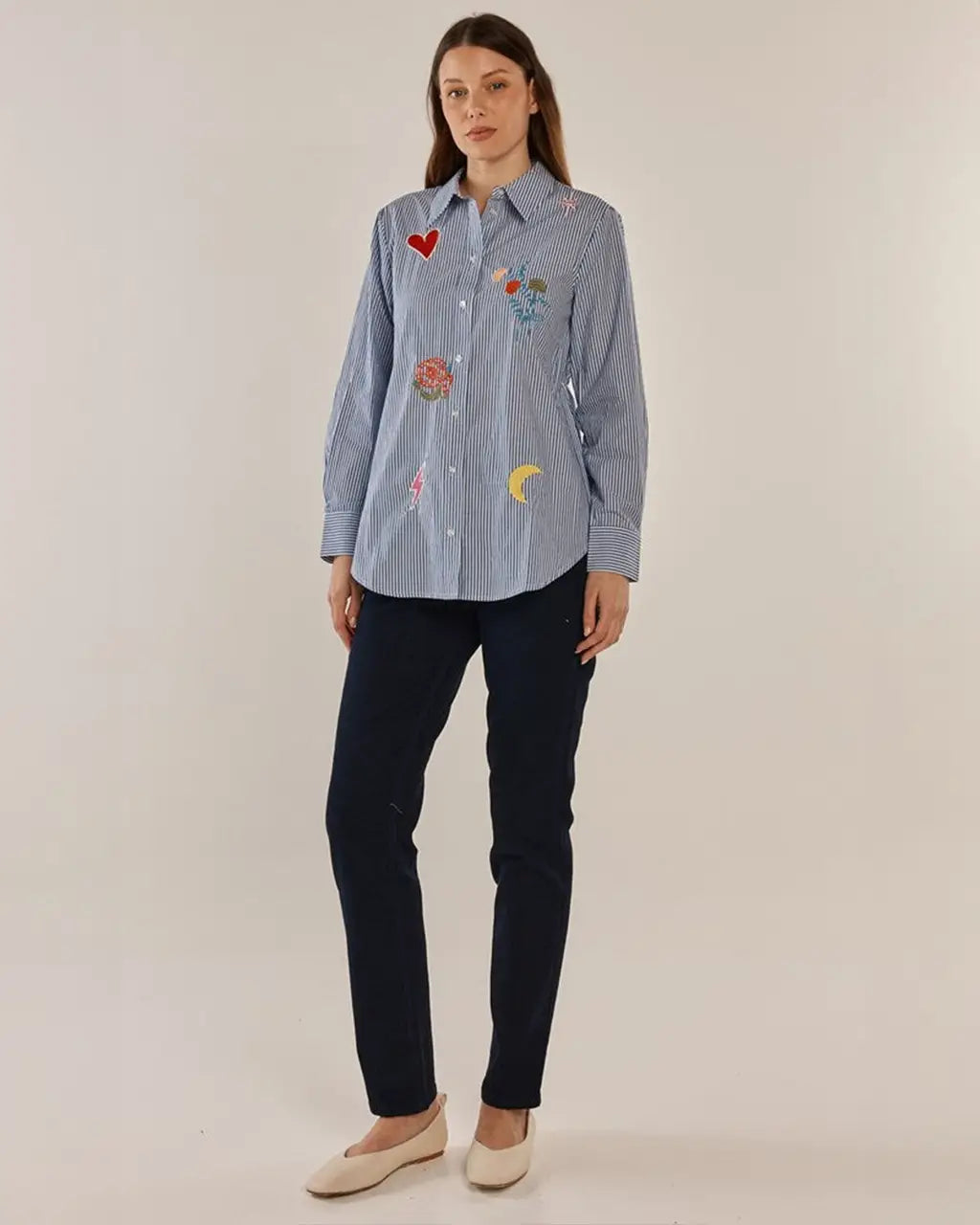 Betty Basics Amelia Shirt Floral Navy Stripe