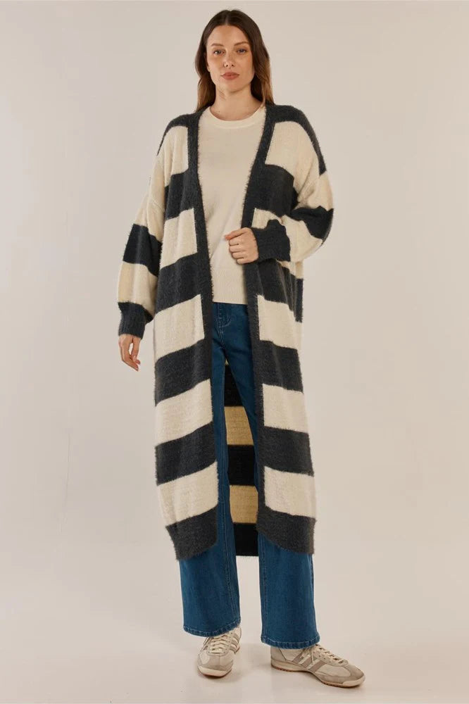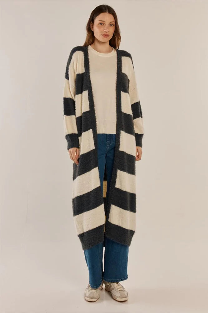 Betty Basics Franca Long Knit Cardigan Navy/White Stripe