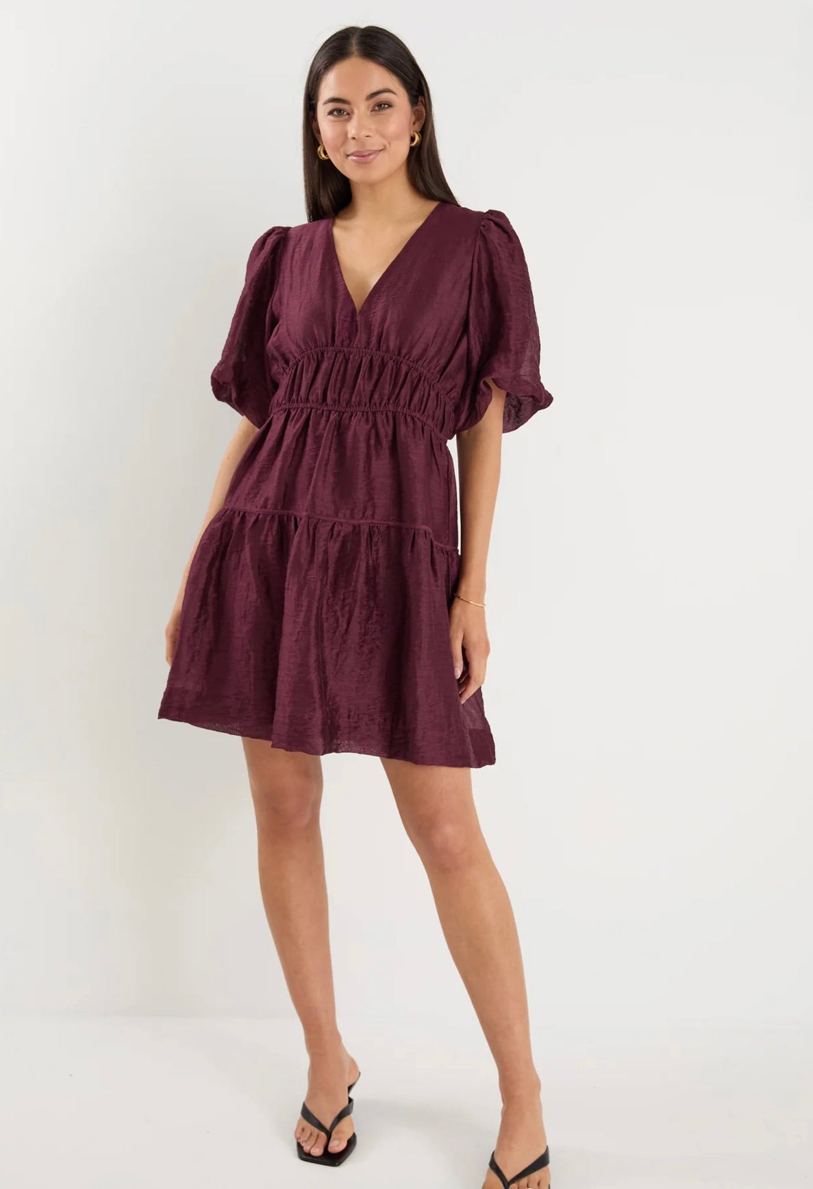 Georgia Mae Axel Burgundy Plum Puff Sleeve V Neck Mini Dress
