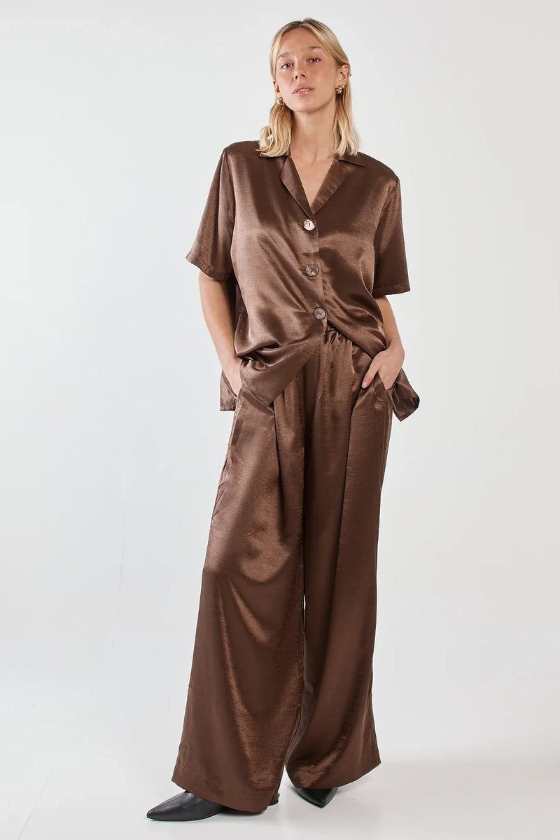 Sass Eddy Crushed Satin Pant Chocolate